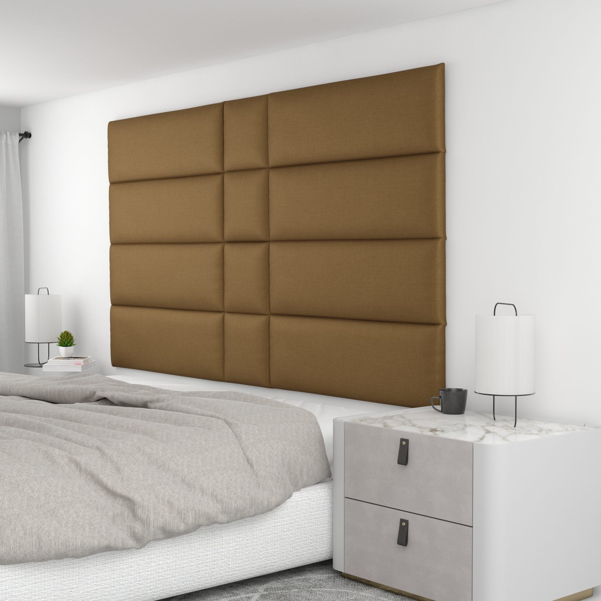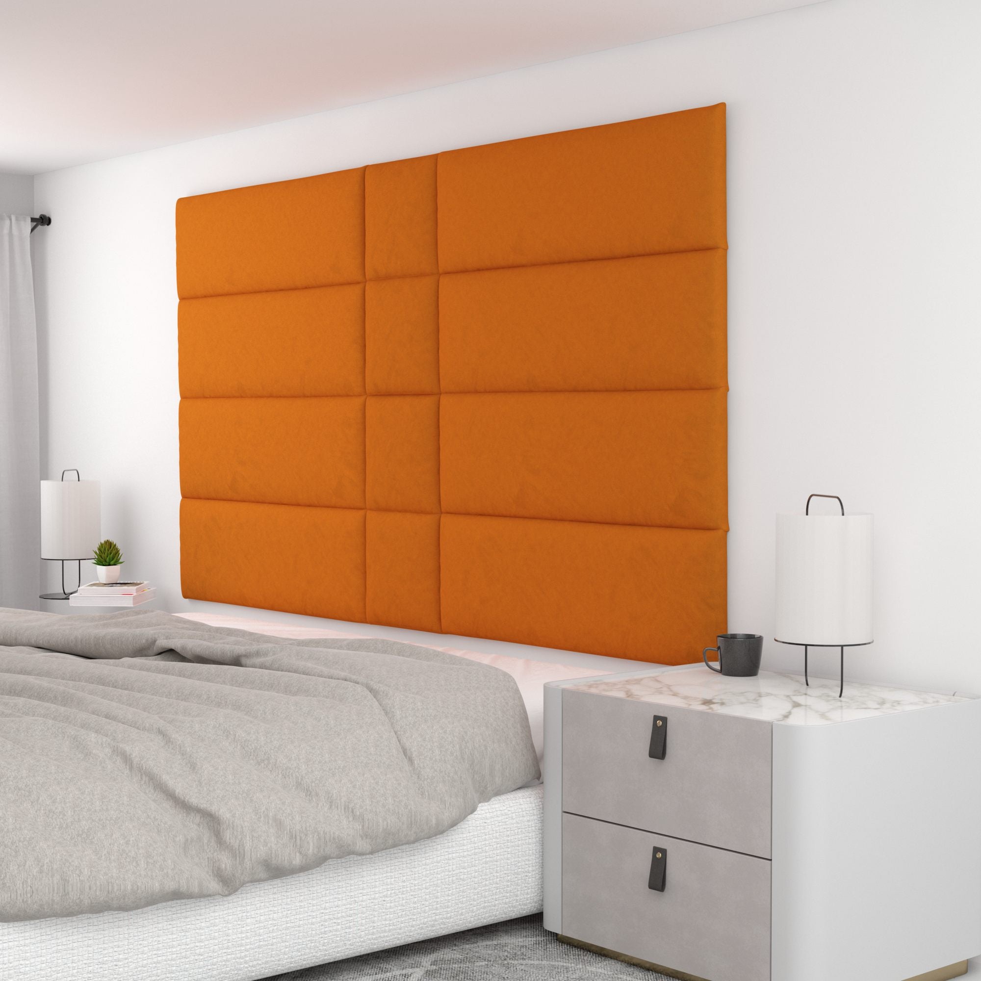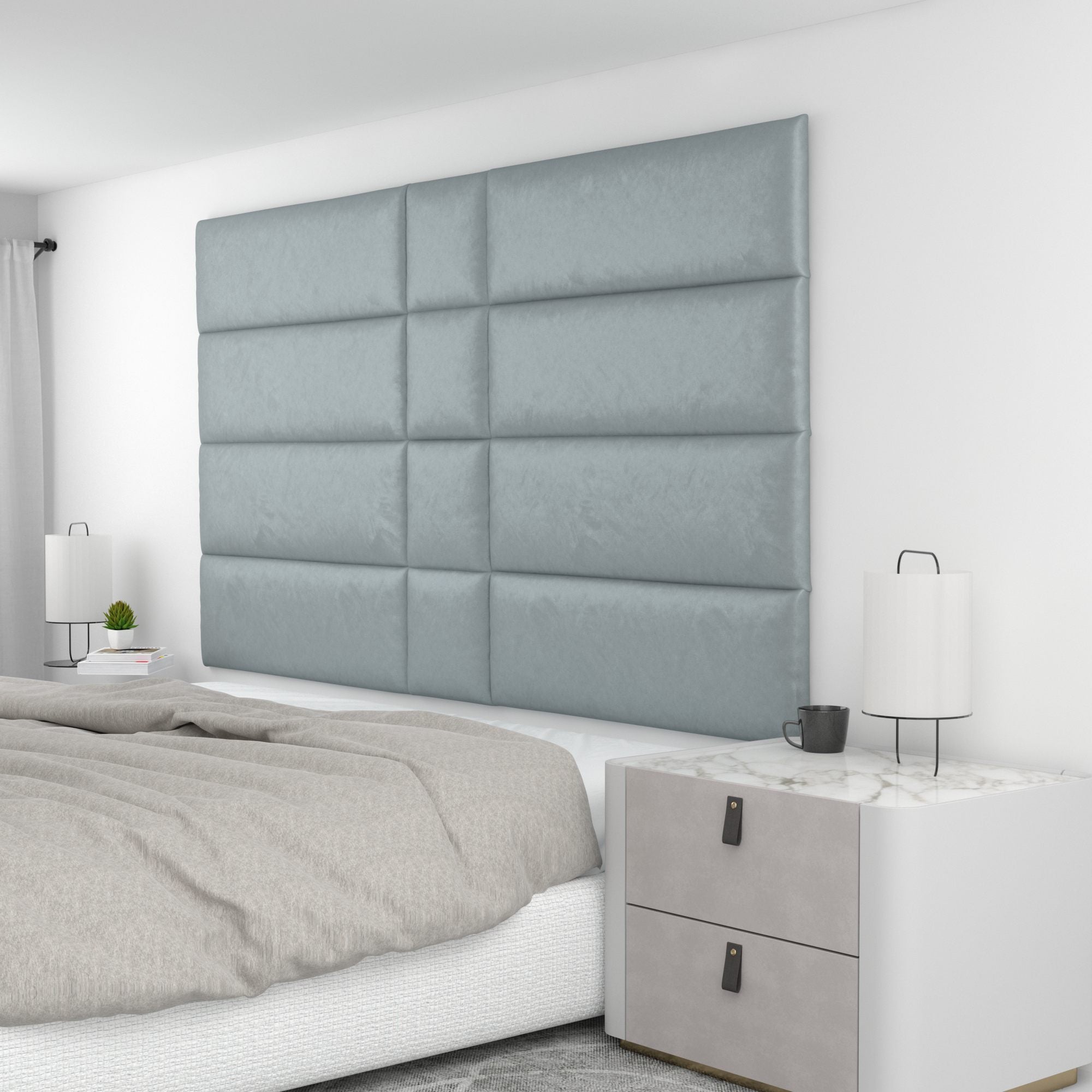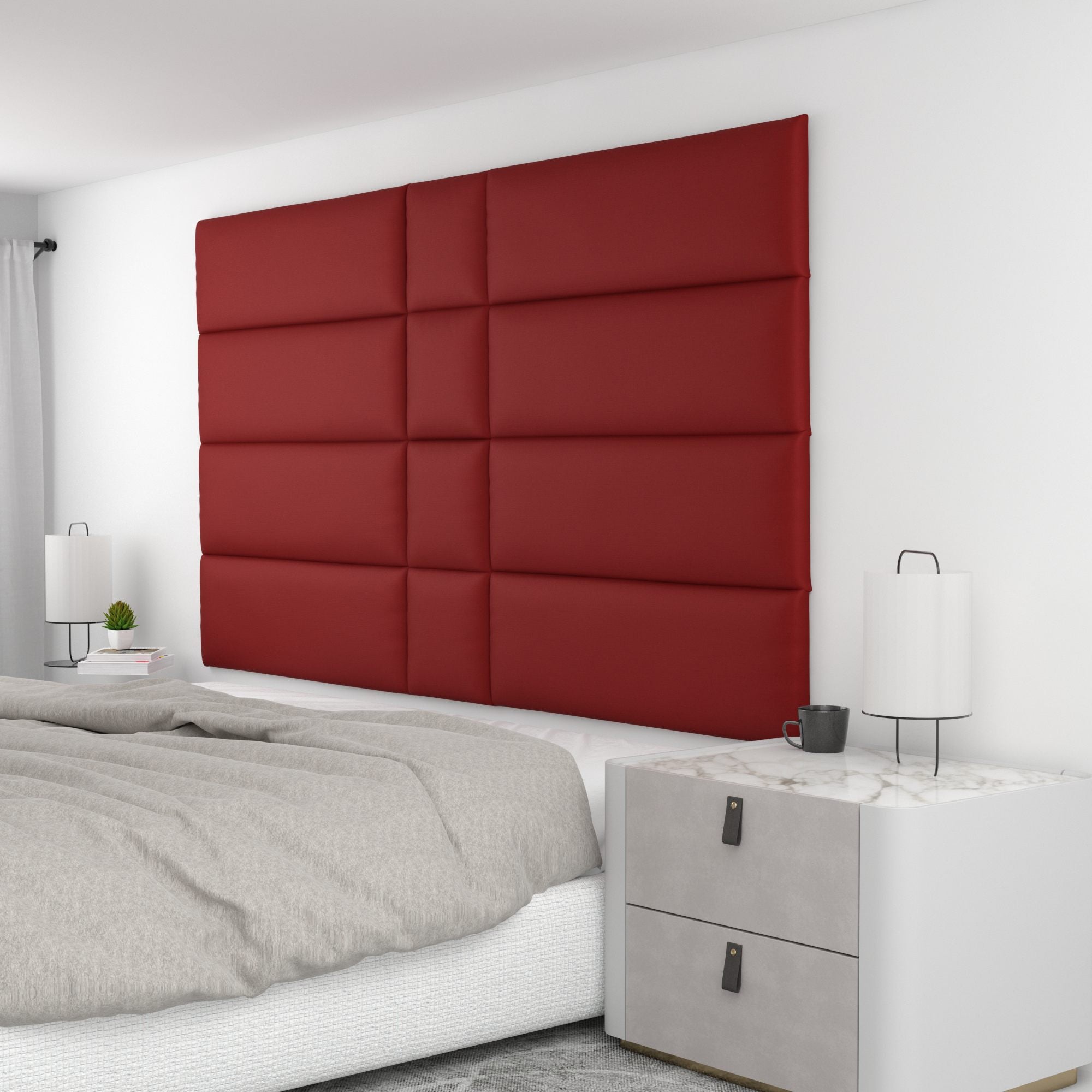 Finish your bedroom, office, or living space in elegance with Wall Panel Pros! Our wall panels mount easily in just minutes and completely transform your room without breaking the bank. Our panels are offered in three sizes (12x12", 12x24", and 12x36") in over 40 color/texture options, making the pattern possibilities endless. With such a wide variety of looks, you are sure to find or create something that compliments your decor seamlessly. Mounting the panels is easy: just measure to find the center point of your install area, mark the location of where your first set of screws will go with the included locator pins (these pop into the mounting pucks on the backs of the panels) and a level, and screw the included mounting pucks into the wall where your marks have been made for a perfectly aligned array! The first panel is used as a reference to help mark the locations of each next panel; the process couldn't be more simple. Once mounted, the panels can be easily removed for cleaning. Wall Panel Pros kits are perfect as a luxurious headboard replacement, to back a couch in a living area, or even to serve as an ultra-professional backdrop for your office desk. Upgrade the look of your home or office in no time with Wall Panel Pros!