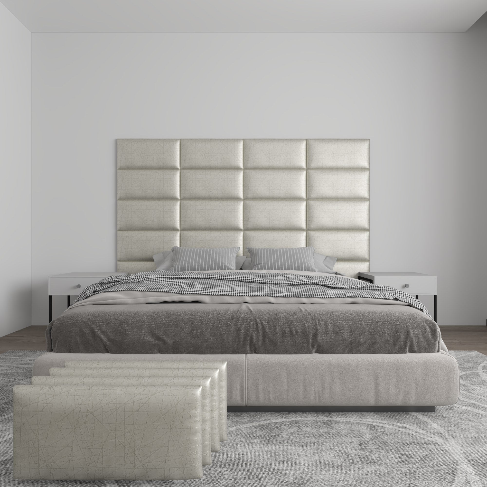 Finish your bedroom, office, or living space in elegance with Wall Panel Pros! Our wall panels mount easily in just minutes and completely transform your room without breaking the bank. Our panels are offered in three sizes (12x12", 12x24", and 12x36") in over 40 color/texture options, making the pattern possibilities endless. With such a wide variety of looks, you are sure to find or create something that compliments your decor seamlessly. Mounting the panels is easy: just measure to find the center point of your install area, mark the location of where your first set of screws will go with the included locator pins (these pop into the mounting pucks on the backs of the panels) and a level, and screw the included mounting pucks into the wall where your marks have been made for a perfectly aligned array! The first panel is used as a reference to help mark the locations of each next panel; the process couldn't be more simple. Once mounted, the panels can be easily removed for cleaning. Wall Panel Pros kits are perfect as a luxurious headboard replacement, to back a couch in a living area, or even to serve as an ultra-professional backdrop for your office desk. Upgrade the look of your home or office in no time with Wall Panel Pros!
